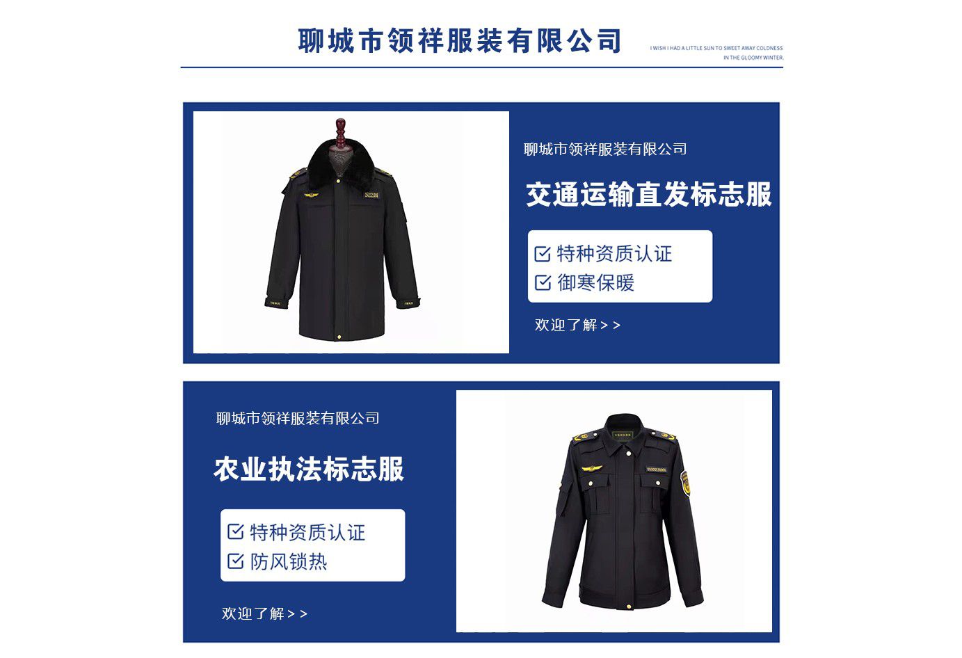 歡迎您訪問聊城市領(lǐng)祥服裝有限公司,真誠為您服務(wù)。