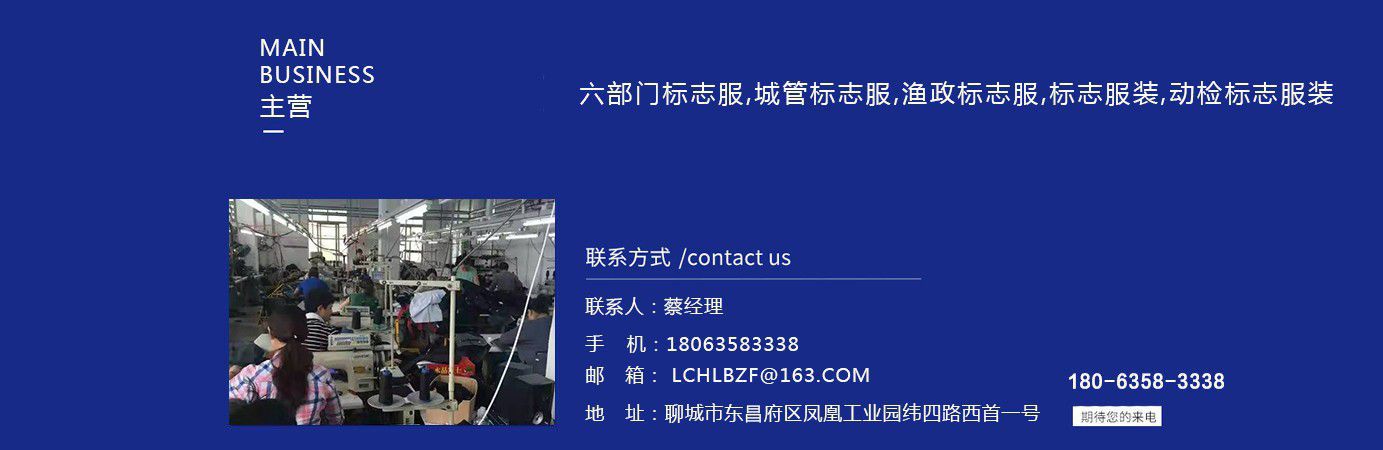 聊城市領(lǐng)祥服裝有限公司主主要生產(chǎn)六部門標(biāo)志服,城管標(biāo)志服,漁政標(biāo)志服,標(biāo)志服裝,動(dòng)檢標(biāo)志服裝,標(biāo)志服裝廠等產(chǎn)品,款式新穎,做工精細(xì),可根據(jù)用戶要求批量定做。公司成立以來,已為各行業(yè)數(shù)千家企業(yè)、集團(tuán)承制了職業(yè)制服。 多年來,我公司本著“質(zhì)優(yōu)高效,守約重譽(yù)”的經(jīng)營理念給廣大新老客戶提供質(zhì)優(yōu)價(jià)廉的產(chǎn)品和售后服務(wù)。憑借良好的信譽(yù),雄厚的實(shí)力,優(yōu)質(zhì)的產(chǎn)品,低廉的價(jià)格愿與新老客戶真誠協(xié)作,業(yè)務(wù)遍布全國各地,是山東優(yōu)秀的標(biāo)志服裝廠,歡迎新老客戶參觀考察! 公司生產(chǎn)的職業(yè)服飾均以標(biāo)準(zhǔn)的質(zhì)量,頂尖精湛的技術(shù)為基礎(chǔ),以客戶的滿意為根本,全程采用電腦輔助設(shè)計(jì)制服,成衣、服飾配件(領(lǐng)帶,領(lǐng)結(jié),紐扣,帽子,企業(yè)標(biāo)志等)均可定織定染,普遍采用進(jìn)口或合資優(yōu)質(zhì)輔料,尺碼按身高和體型劃分或量體定制。每一道工序,每一個(gè)生產(chǎn)環(huán)節(jié)精雕細(xì)琢,充分體現(xiàn)了以質(zhì)量求生存,以信譽(yù)求發(fā)展的理念。并以準(zhǔn)確的市場定位,先進(jìn)的營銷理念,贏得廣大客戶的信賴支持! 公司宗旨:“團(tuán)結(jié)、服務(wù)、創(chuàng)新”。公司方針:“專業(yè)創(chuàng)造輝煌,質(zhì)量保證未來,用心換得人心”。熱誠歡迎業(yè)界同仁來公司洽談!...